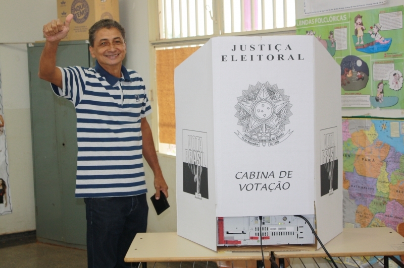 O candidato à reeleição Silval Barbosa (PMDB) foi o primeiro, entre os 4 pleiteantes ao Palácio Paiaguás, a votar neste domingo (3). Ele chegou à Escola Estadual Antônio Ometo, em Matupá, acompanhado de sua esposa Roseli Barbosa, por volta das 8h40, e creditou o seu voto na sessão 54, zona 033. A manutenção do título dele na cidade se deve ao fato de Silval ter sido prefeito de Matupá por dois mandatos e ter iniciado a sua carreira política no município do Nortão. "Meu coração está batendo 15 por 15, estou confiante no primeiro turno"