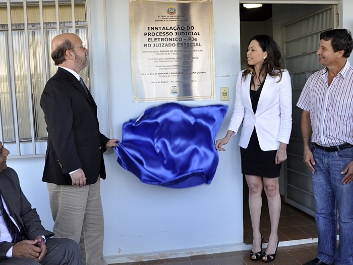 O ato de instalação do Processo Judicial Eletrônico (PJe) no Juizado Especial Cível e Criminal da Comarca de Barra do Bugres (168km a médio norte de Cuiabá), realizado nesta segunda-feira (16 de julho), representa um marco na trajetória da justiça mato-grossense no sentido de proporcionar mais celeridade aos trâmites processuais e, consequentemente, aumento da satisfação dos usuários da Justiça. O PJe substitui os processos físicos, gera economia aos cofres públicos e torna a prestação jurisdicional mais rápida. E a maior velocidade no trâmite processual é justamente uma das principais metas do presidente do Tribunal de Justiça de Mato Grosso, desembargador Rubens de Oliveira Santos Filho, que esteve in loco em Barra do Bugres para prestigiar a instalação do novo sistema. O município é o primeiro do interior do Estado a receber o PJe.