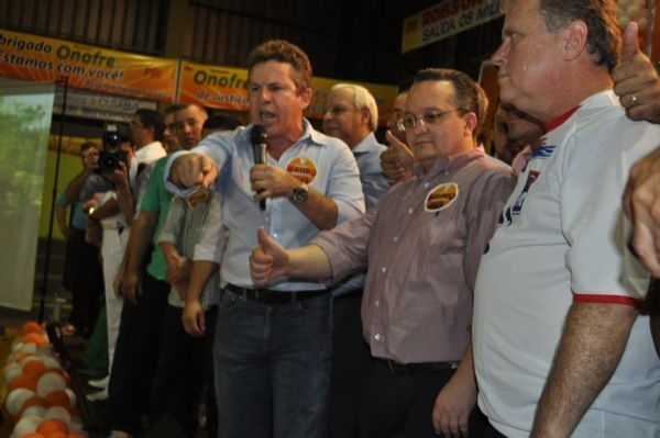 Maggi e Taques sobem no palanque de Mendes com MT Muito Mais "repaginado"
