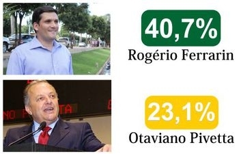 O nome do empresário Rogério Ferrarin (PMDB), que vai concorrer a cargo eletivo pela primeira vez, é o líder nas intenções de voto à sucessão em Lucas do Rio Verde, aponta pesquisa. Ferrarin detém 40,7%. O segundo colocado é o ex-prefeito por dois mandatos e ex-deputado Otaviano Pivetta (PDT), que aparece com 23,1%, uma desvantagem de 17,6 pontos percentuais em relação ao peemedebista.