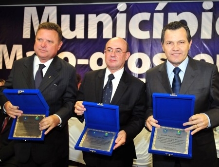 Em reconhecimento aos trabalhos desenvolvidos em benefício dos municípios de Mato Grosso, o presidente da Assembleia Legislativa, deputado José Riva (PP), foi um dos homenageados na noite desta segunda-feira (31.05) durante a abertura do XXVII Encontro de Prefeitos de Mato Grosso, no Centro de Eventos do Pantanal, em Cuiabá. Além do parlamentar, receberam uma placa de agradecimento o ex-governador Blairo Maggi (PR) e o atual chefe do Executivo Silval Barbosa (PMDB).