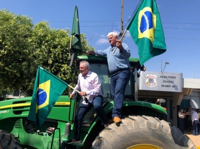 Imagens gravadas pela imprensa local mostram a presença de pelo menos cinco tratores estacionados na rua na frente da Polícia Federal. Galvan, que até o ano passado era presidente da Aprosoja Mato Grosso e hoje preside da Aprosoja Brasil, segurava bandeiras do Brasil e fez um discurso logo na chegada.