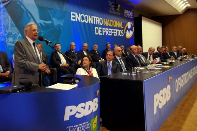 Na mesa, estavam presentes lideranças nacionais do PSDB, como o prefeito eleito de São Paulo, João Dória, o governador de São Paulo, Geraldo Alckmin, o ex-presidente Fernando Henrique Cardoso, além do ministro das relações exteriores José Serra e o senador e presidente nacional da sigla, Aécio Neves.