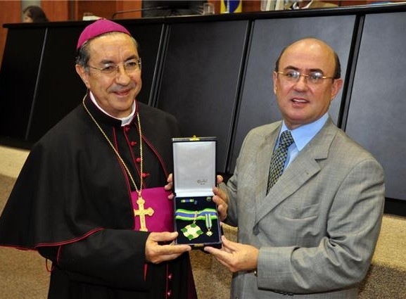 A Assembleia Legislativa de Mato Grosso, por meio de seu presidente, o deputado José Riva (PP), outorgou à Arquidiocese de Cuiabá, a comenda senador Filinto Muller (mérito legislativo) pela passagem de seu centenário ocorrido no último dia 5 de abril. A solenidade aconteceu nesta terça-feira (6), no Plenário das Deliberações Renê Barbour, por meio de uma de sessão especial que contou com a presença da comunidade católica, representantes da Arquidiocese e autoridades mato-grossenses, a exemplo do deputado federal Eliene Lima (PP).