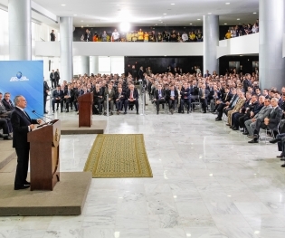 O evento foi um encontro do presidente com a Câmara Brasileira da Indústria da Construção, com a presença de mais de 800 empresários e entidades representativas.