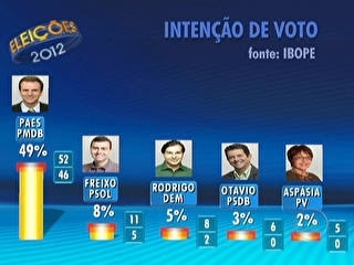 Paes tem 49%, e Freixo, 8%, indica pesquisa Ibope no Rio