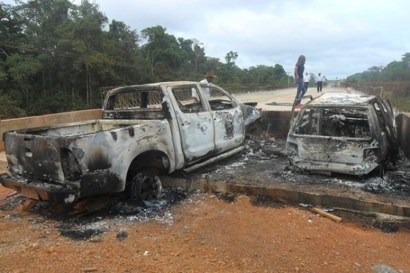 Uma caminhonete Toyota Hillux e um automóvel Fiat Uno pegaram fogo, neste domingo à noite, depois de ambos colidirem com a marquise de uma ponte que está em construção na MT-430, na região de Confresa (1.180 km a Nordeste de Cuiabá). A ponte está em obras e ainda não possui aterro na cabeceira