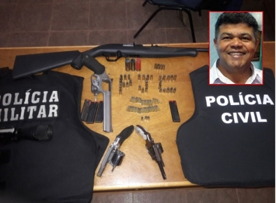 Três pessoas foram presas em flagrante por posse ilegal de arma de fogo. Foram apreendidos 03 revólveres cal. 38 e 32; 01 espingarda rifle cal. 22; centenas de munições cal. 22/32/38 e itens operacionais como coldres, carregadores, pólvora, canivete e uma luneta.