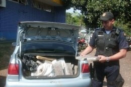 Tenente diz que a droga foi encontrada em tabletes debaixo do banco traseiroCerca de 200 quilos de maconha foi apreendida durante uma perseguição policial, na madrugada deste domingo, em Jaciara (140 Km de Cuiabá).