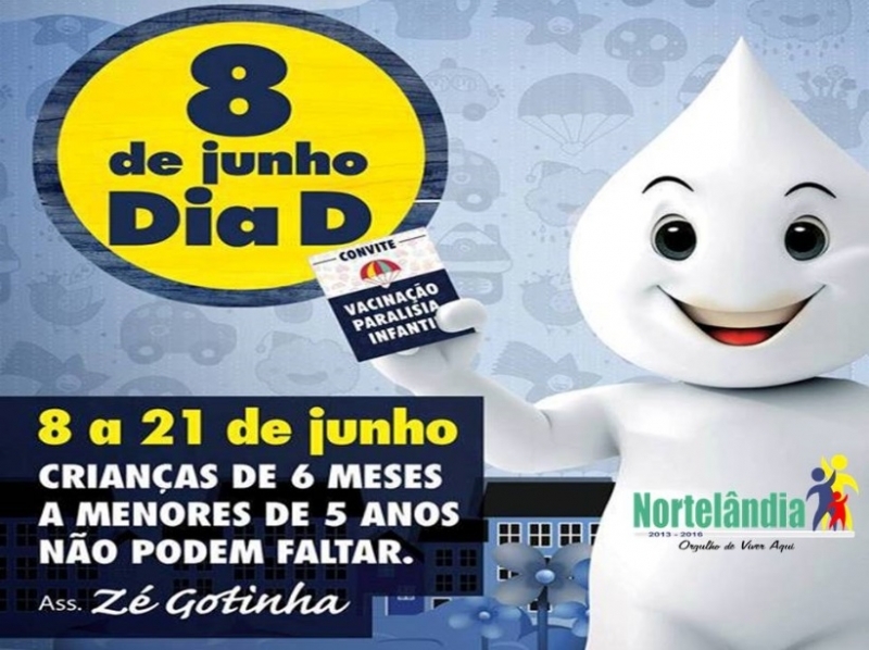 Tem início neste sábado (08) o dia “D” a Campanha Nacional de Vacinação contra a Poliomielite. A meta da Secretaria Municipal de Saúde e Saneamento é vacinar 95% crianças nortelandenses durante a campanha. Em todo o País, o público alvo da iniciativa deste ano supera o número de 12 milhões de crianças