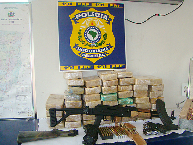 Dois homens foram detidos pela Polícia Rodoviária Federal (PRF), transportando 50 “tijolos” envoltos em fita adesiva, com pasta de cocaína, uma pistola modelo L380, um fuzil israelense, um carregador de pistola, além de 975 munições dos calibres 9mm, 380, e 7.62. O flagrante aconteceu durante fiscalização de rotina em frente à base operacional da PRF, localizada no km 387 da BR-364, na saída do município