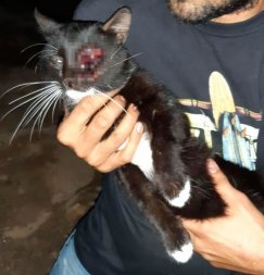 A dona do animal procurou a Polícia Militar e fez a denúncia. Segundo ela, o vizinho teria perseguido o gato pela rua e disparado a espingarda, vindo a ferir o animal no olho.