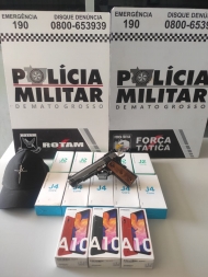 Já em outra residência, outros 12 celulares lacrados foram achados e também uma pistola. Com isso, outro homem confessou que estes produtos foram roubados na loja Martinello do bairro Goiabeiras, na segunda (2).