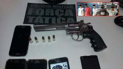 Com o simulacro, também foram apreendidos cinco estudantes, alguns deles usando uniformes da instituição de ensino. Os menores chegaram a ser algemados para serem conduzidos até a Central de Flagrantes.
