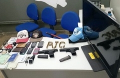 Polícia cumpre mandado judicial e apreende arma e produtos contrabandeados