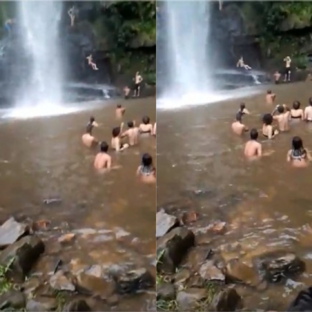 Garota despenca de cachoeira e bate com costas e cabeça em pedra