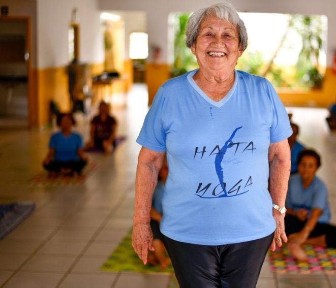 Aos 82 anos, Dona Rosinha dá aulas de yoga gratuita em centro de convivência de idosos