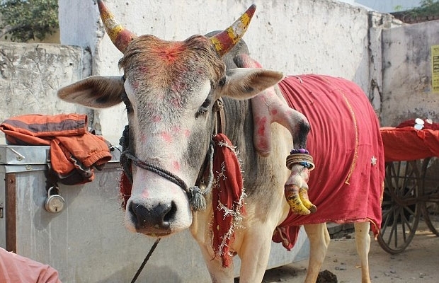 Uma vaca que nasceu com cinco patas tem sido saudada como milagreira. O animal vive em Raipur, na Índia