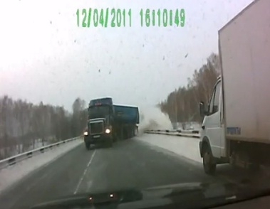 Dirigir sob neve é sempre arriscado. Para este motorista "cinegrafista" em estrada de Novosibirsk (Rússia) também é sinônimo de sorte.