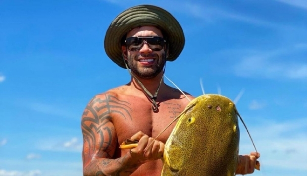 Em MT, Gusttavo Lima pesca peixe de 30 kg, visita família ribeirinha e posa em foto com presidente da AL