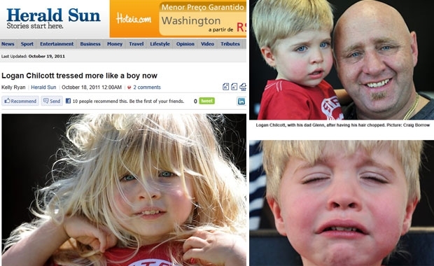 Um menino de apenas dois anos que nunca havia cortado o cabelo protagonizou uma cena curiosa em sua primeira visita ao barbeiro na última semana. Logan Chilcott chorou ao se separar das longas madeixas loiras, da mesma forma que o pai dele, Glenn, chorou ao cortar o cabelo em 1965, também aos dois anos de idade.
