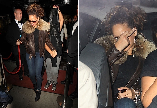 Rihanna recebeu uma multa de trânsito por estacionar em local proibido enquanto estava em uma boate na madrugada desta quinta-feira (13), em Londres, na Inglaterra. A cantora se irritou com a situação e acabou mostrando o dedo do meio para os fotógrafos que a aguardavam na frente do clube "Stringfellows", repleto de homens nus, relatou a agência fotográfica "Splash".