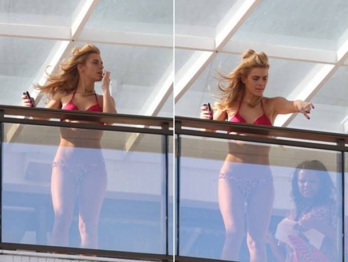 No dia em que completa 33 anos, Carolina Dieckmann foi clicada - frente e verso! - na varanda de um hotel na Barra da Tijuca, Zona Oeste do Rio, de biquíni. Seria uma gravação como Teodora, sua personagem de "Fina Estampa"?