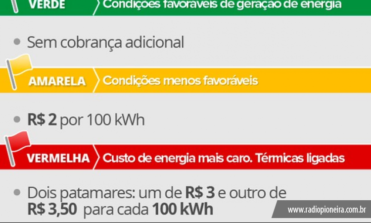 A Agência Nacional de Energia Elétrica (Aneel) informou nesta sexta-feira (30) que a bandeira tarifária de julho será amarela, o que implica em uma cobrança extra nas contas de luz de R$ 2 a cada 100 kilowatts-hora (kWh) consumidos.
