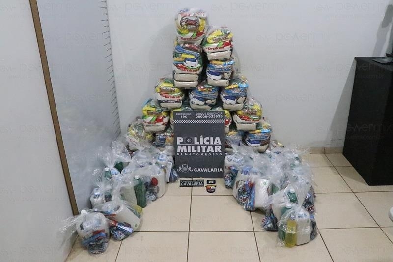 O 1° Esquadrão Independente de Policiamento Montado (Cavalaria da PM) apreendeu na noite desta terça-feira (16), por volta das 20h35, 22 cestas de alimentos e 21 kits de produtos de limpeza e higiene pessoal, além de droga, dinheiro e alguns objetos. Uma mulher de 25 anos, vulgo “Magnata” foi presa no local, o fato ocorreu em uma residência na Rua das Mangueiras, bairro Bela Vista, em Nova Mutum/MT.