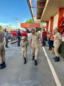 Acompanhado de sua mãe, do corpo docente da Escola Pedrosa de Moraes, onde estuda, e do coronel Outo, Henrique chegou ao batalhão com muito entusiasmo e expectativa. Ele foi calorosamente recebido pelos bombeiros com o corpo musical e honras militares.