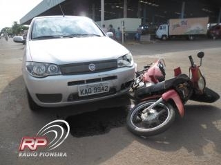 Acidente entre carro e moto deixa mulher ferida no centro de Tangará