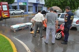 Por volta das 13h00 desta sexta-feira(01), ocorreu um acidente no cruzamento das avenidas Curitiba e Tancredo Neves, em Sorriso, envolvendo um VW Polo conduzido por um homem e, uma motocicleta conduzido por uma jovem