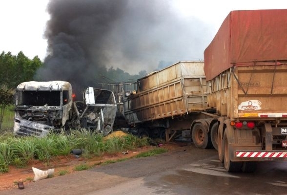 Grave acidente entre 2 caminhões bitrens na madrugada desta sexta-feira (4) no km 542, próximo ao município de Jangada (80 km ao norte de Cuiabá), matou uma pessoa e deixou outras duas feridas, na BR-364