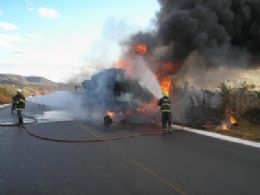 Caminhão bate de frente com carro do Circo do Beto Carrero e pega fogo