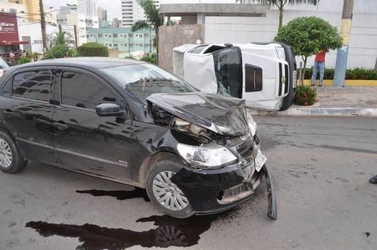 Uma caminhonete S 10 da Secretaria de Estado e Saúde (SES) capotou após colidir com um veículo Gol, por volta das 8 horas da manhã desta quarta-feira (16), em um cruzamento do bairro Boque da Saúde, na capital.