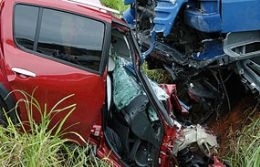 Um motorista de aproximadamente 40 anos ficou gravemente ferido agora há pouco em uma colisão frontal entre um caminhão-tanque e um Fiesta na BR-070, saída de Barra do Garças para Cuiabá, próximo ao parque de exposição agropecuária. O motorista do veículo de passeio ficou preso entre as ferragens. Para retirá-lo, o Corpo de Bombeiros teve de recortar o veículo.