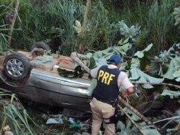 Carro com 3 pessoas capota na BR 364; idosa morre e filha sofre lesões graves