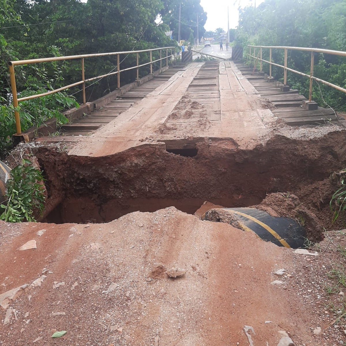 Fortes chuvas rompe cabeceira de ponte do Rio Serragem em Nobres