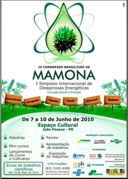 A comissão organizadora do IV Congresso Brasileiro de Mamona (IV CBM) e do I Simpósio Internacional de Oleaginosas Energéticas (I SIOE) alerta que o prazo para envio dos trabalhos científicos encerra-se na próxima segunda-feira, 10 de maio Os eventos serão realizados em João Pessoa/PB, de 7 a 10 de junho, com o tema principal “Inclusão Social e Energia”.