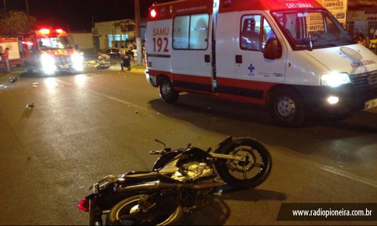 O acidente foi registrado na noite desta sexta-feira (25), por volta das 20h, na Avenida Brasil, em frente ao Supermercado Big Master.