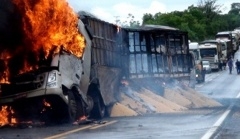Motorista em 70% do corpo queimado após carreta pegar fogo em acidente com 6 veículos