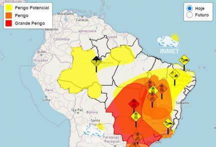 Instituto Nacional de Meteorologia (Inmet) alerta para grande perigo de onda de calor e risco à saúde em todo Estado. Conforme previsão, Cáceres será a cidade mais quente, com temperaturas de até 45ºC.