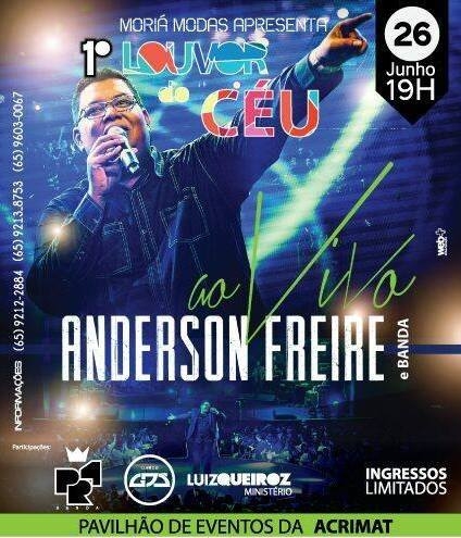 O 1º Louvor do Céu que acontecerá no Pavilhão de Eventos da ACRIMAT em Cuiabá no dia 26 de Junho, contará com a participação de diversas atrações regionais e evento gospel nacional com Anderson Freire e Banda.