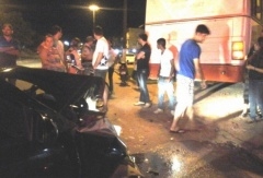 Um acidente envolvendo um veículo Ford Ká, na cor preta e um ônibus foi registrado na noite de ontem (02), na avenida Ludovico da Riva Neto, Centro de Alta Floresta. Uma mulher teve as pernas presas às ferragens e precisou do auxílio do Corpo de Bombeiros.