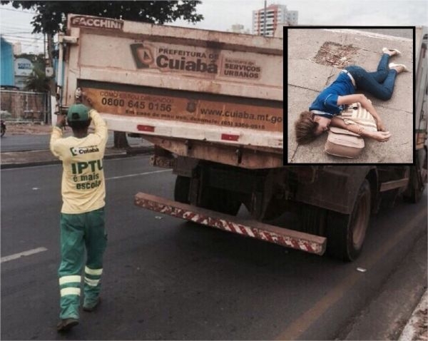 A tampa de um caminhão da Secretaria de Municipal de Serviços Urbanos de Cuiabá (SMTU) se soltou e atingiu uma mulher no rosto na tarde desta quinta-feira (14). A tampa da carroceria do veículo acabou abrindo e atingiu a vítima. O acidente aconteceu na avenida Miguel Sutil, na capital mato-grossense.