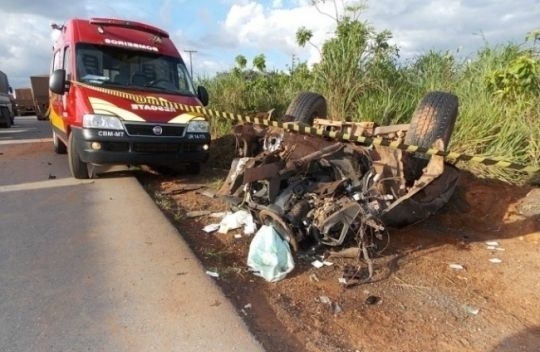A colisão entre um veículo Mitsubishi Pajero e uma carreta bitrem, ocorrida na tarde desta quarta-feira (20), na BR-163, foi tão violenta que literalmente rasgou o veículo de passeio ao meio