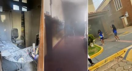 Veja vídeos - Fogo consome sala no Liceu e causa pânico durante aula