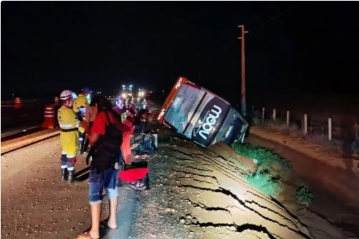 Ônibus tomba na BR-163 e deixa ao menos 10 feridos em viagem entre Sinop e Cuiabá