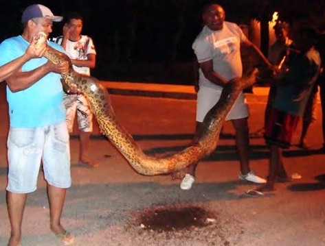Um morador da comunidade de Faval, distrito de Nossa Senhora do Livramento (42 quilômetros de Cuiabá) passou um grande susto nesta segunda-feira (12). Cláudio Benedito Prado (54) foi atacado por uma sucuri de 7 metros. O ataque aconteceu por volta das 20h, quando ele voltava para casa com a esposa. Ele estava passando por um açude que fica na comunidade quando percebeu um movimento estranho na meio da estrada. Cláudio conta que acendeu uma lanterna e viu que a cobra estava prestes a atacá-lo. "Quando eu acendi a lanterna percebi que ela já ia atacar. Peguei a foice e a acertei", disse Cláudio.
