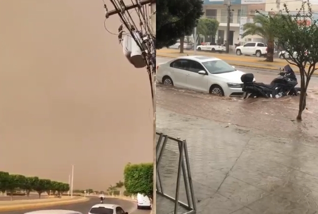 Chuva causa alagamento e transtornos em avenida; nuvem de poeira cobriu cidade